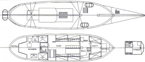Indretning: Salong, kahyt m. i alt 12 køjer, kabys, 2 toiletter/bad, motorrum. Styrhus med de mest moderne instrumenter inden for navigationsudstyr.